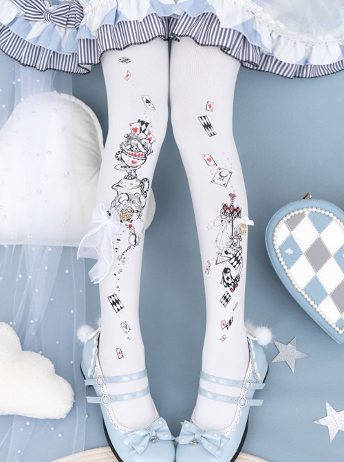 Alice's Afternoon Tea Series Autumn Winter Pure Color Wonderland Print Ornate Stereoscopic Bowknot Decoration Classic Lolita Pantyhose