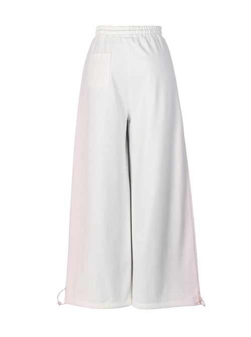 Angel Lamb Print Sporty Style White Daily Casual Versatile Kawaii Fashion Loose Straight Tube Wide Leg Pants