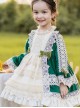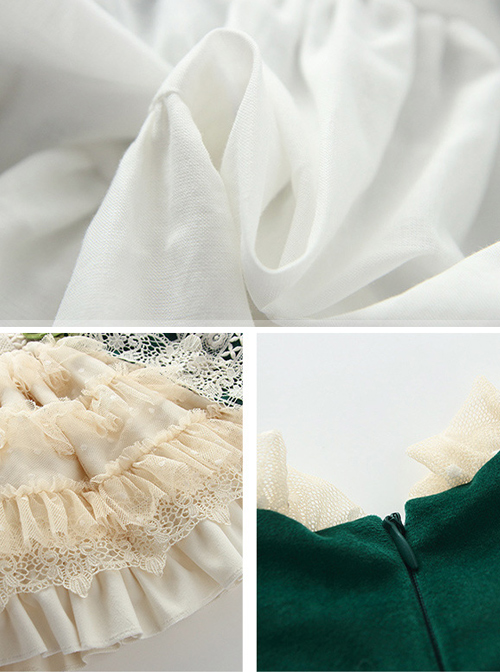 Apricot Lace Green Velour Children Classic Lolita Long Sleeve Dress