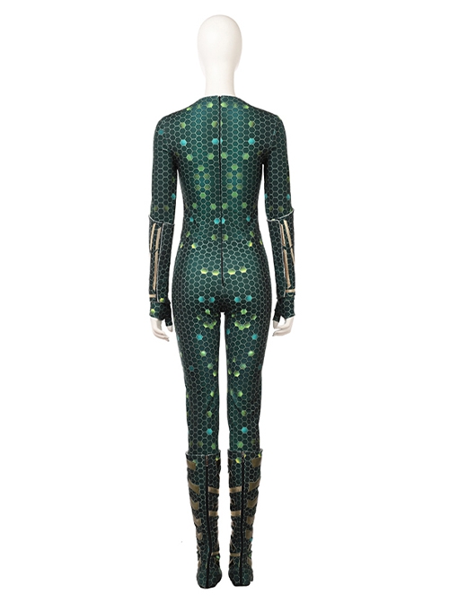 Aquaman Halloween Cosplay Mera Green Scale Print Battle Suit Costume Full Set