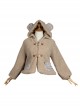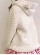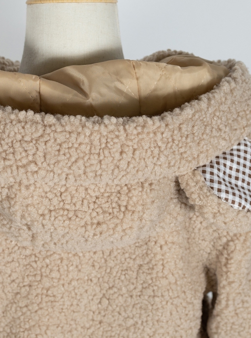 Autumn Winter Keep Warm White Plush Kitten Light Brown Plush Bear Plaid Pocket Ear Decorate Sweet Lolita Long-Sleeved Coat