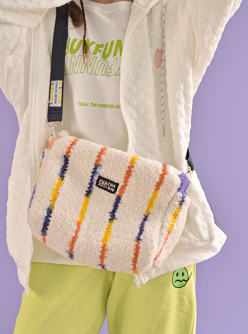 Autumn-Winter Stripe Plush Stereoscopic Small Square Bag Classic Lolita Portable Shoulder Bag