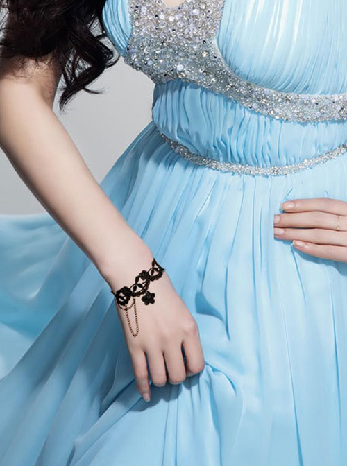 Beautiful Black Lace Girls Lolita Bracelet And Ring Set
