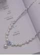 Beautiful Elegant Classic Lolita Broken Silver Aquamarine Pearl Pendant Clavicle Chain Necklace
