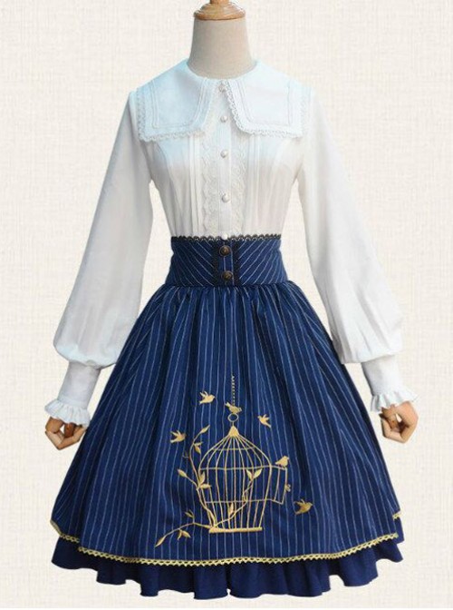 Birdcage Embroidery Vintage Stripe Blue Chiffon Classic Lolita Skirt
