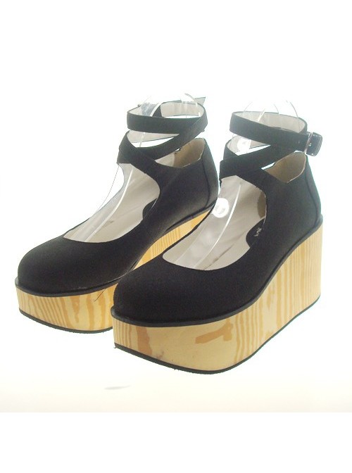 Black 3.1" Heel High Lovely Lint Point Toe Ankle Straps Platform Girls Lolita Shoes