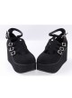 Black 3.1" High Heel Gorgeous Flannel Round Toe Japanese Punk Buckle Platform Girls Lolita Shoes