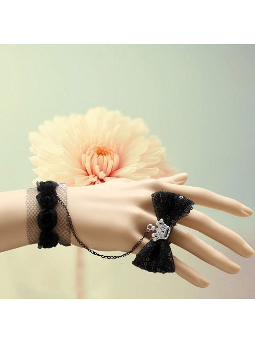 Black Bow Crown Girls Lolita Bracelet And Ring Set