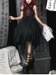 Black Chinoiserie Stand Collar Buckle Printed Shoulder Cutouts Metal Chain Irregular Hem Classic Lolita Sleeveless Dress