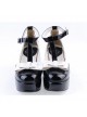 Black & White 3" High Heel Charming PU Ankle Straps Pointed Toe Bow Platform Girls Lolita Shoes