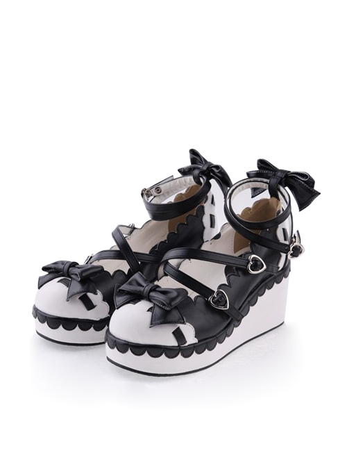 Black & White2.8" High Heel Adorable Polyurethane Round Toe Criss Cross Straps Platform Girls Lolita Shoes