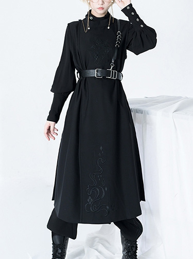 The Chinese Ouji style is distinguished by its incorporation of structured Western silhouettes with the ornate and symbolic designs found in Chinese attire. It often features Western-style shirts and jackets that are reimagined with stand-up collars or frog button closures akin to those found on a Chinese round-neck robe. The fusion creates a look that is both exotic and nostalgic. It blends centuries-old Chinese fashion influences with a modern, gothic edge.