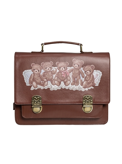 Besides, you can choose between pink and blue. The Lolita school bag is another item that forms a part of the set. This bag has a vintage design and comes in brown with a brass buckle. Moreover, the little bear print inscribed on the bag makes it a great fashion statement when used with a long sleeve dress.
