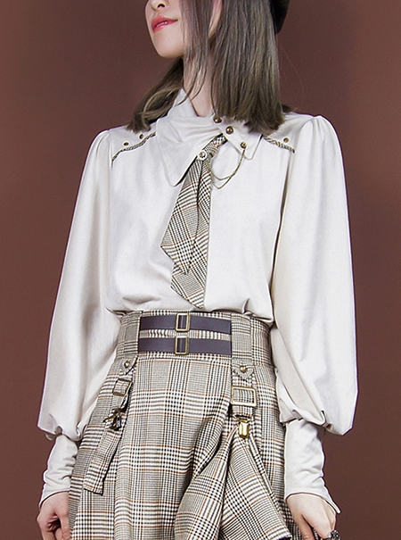 If you are much more than being extrovert yet confused about what to wear this winter, the Retro Punk series is what you should consider. The set includes a solid color long sleeve shirt along with an irregular hem lattice midi skirt and a Lolita black hat.