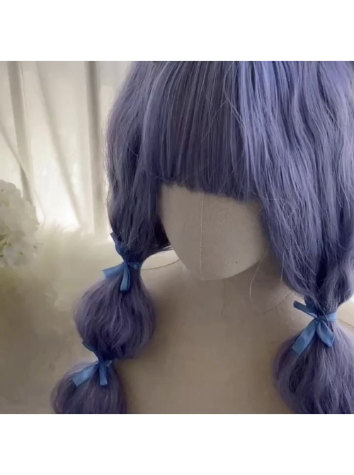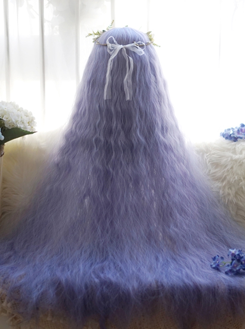 Blue Purple Extra Long Stylish Little Curly Design Air Bangs Classic Lolita Princess Long Wig
