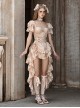 Broken Ballet Series Champagne Classic Lolita Rococo Court Tie Up Train Skirt Fishtail Skirt Lace Fishbone Top Set