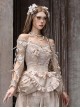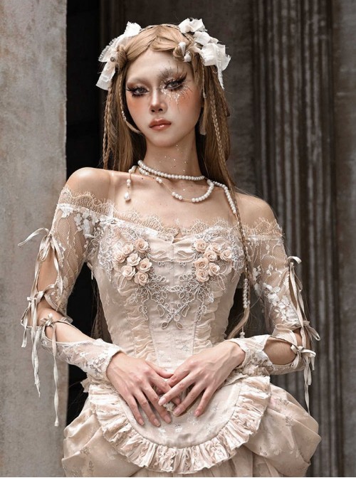 The elegant champagne color, delicate lace crochet, and generous off-shoulder design bring a little sexiness, and the classical Rococo style is beautiful and charming.