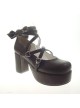Brown 3.1" Heel High Romatic Suede Round Toe Cross Straps Platform Lady Lolita Shoes
