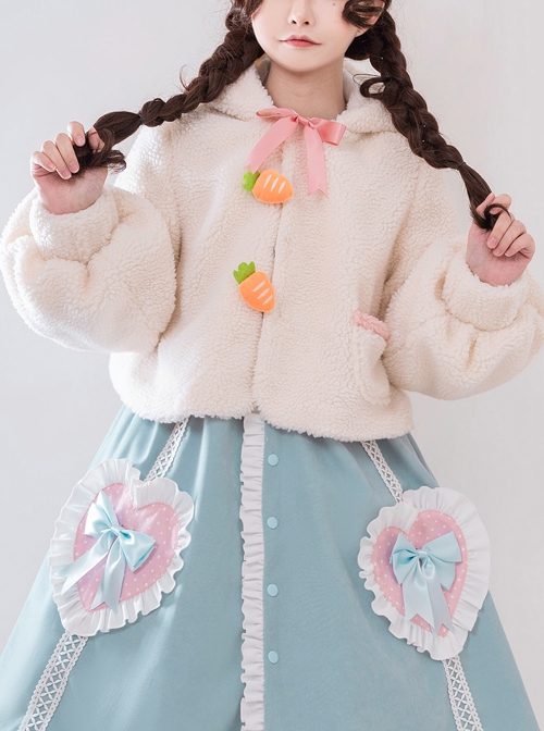 Warm Rabbit Series Pure White Plush Cute Rabbit Doll Decoration Classic Lolita Wide Sleeve Wool Coat