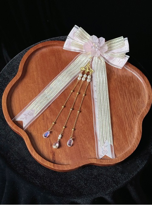 Butterfly Whispers Series Dreamy Sweet Lolita Chinese Style Flower Water Drop Beads Chain Bowknot Hair Clip