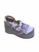 Cake Tower Series Satin Platform Wedge Doll Sense Ruffles Bowknot Pearl Cross Ribbon Sweet Lolita Shoes