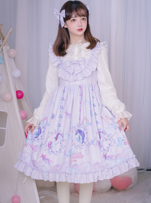 Carousel Series JSK Ruffle Sweet Lolita Purple Sling Dress