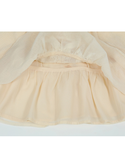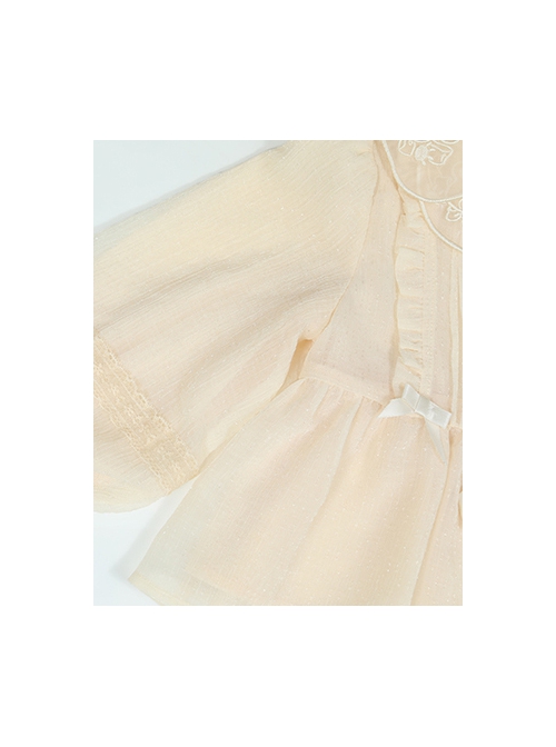 Champagne Delicate Lace Jacquard Bear Embroidery Pleated Bow Knot Decoration Classic Lolita Kid Doll Neck Buttons Long Sleeve Shirt