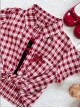 Cherry Magic Potion Series Sweet Cool Summer Retro Red White Plaid Kawaii Fashion Lapel Short Sleeve Shirt
