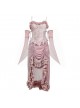 Cherry Nightmare Series Velvet Embossed Fabric Lace Frills Drawstring Design Stretch Flared Sleeves Sexy Gothic Pink Sling Dress