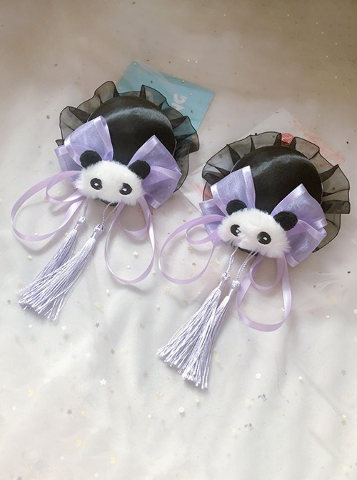 Chinese Style Lolita Chunli Cute Panda Bowknot Meatball Head Cheongsam Fringe Hairpin