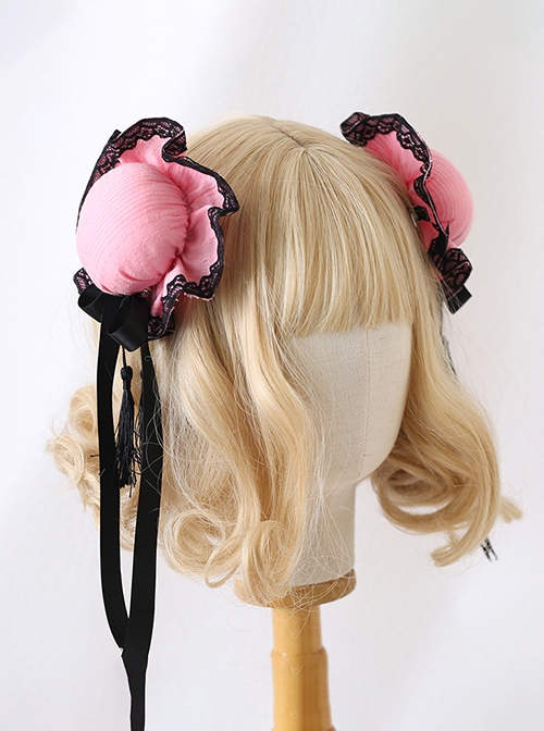 Chinoiserie Quadratic Element Chunli Lace Ribbon Bowknot Tassel Meatball Head Side Clip Sweet Lolita Hairpin