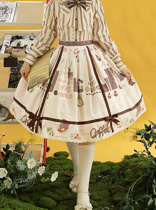 Chocolate Candy Irregular Letter Print Decoration Detachable Bow Knots Classic Lolita Skirt