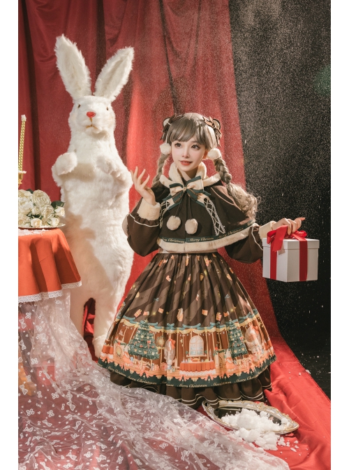 Christmas Story Series Warm Short Plush Sweet Lolita Winter Hooded Cloak