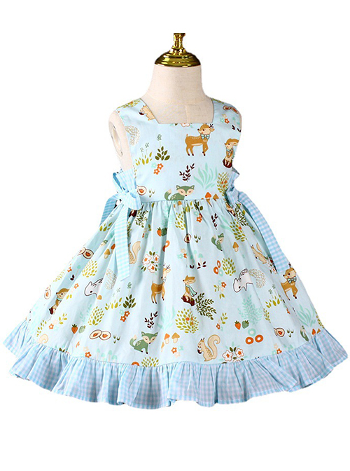 Classic Lolita Cute Animal Print Decoration Pleated Lace Bow Knot Kid Sleeveless Dress