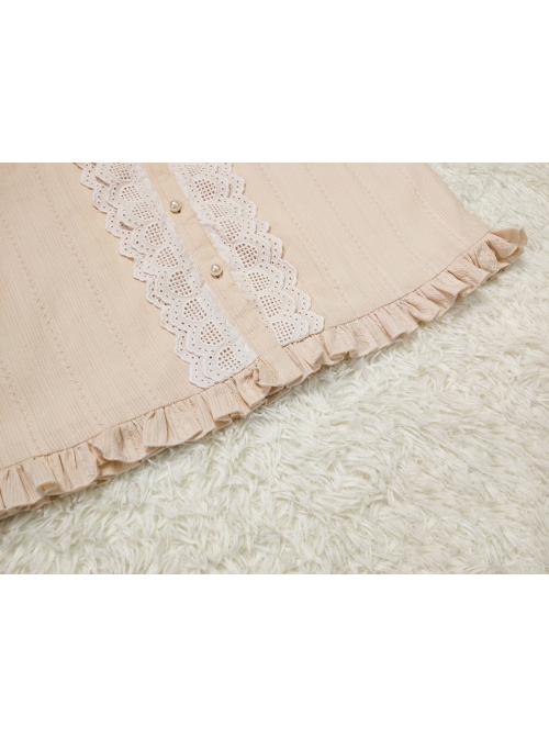Classic Lolita Pleated Hollow-Out Ruffles Design Doll Neckline Decoration Detachable Sleeves Daily Shirt