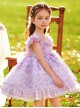 Classic Lolita Pleated Lace Bow Knot White Jacquard Lace Trim Purple Floral Kid Dress