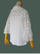 Classic Lolita Solid Color Pleated Doll Neckline Elegant Retro Openwork Jacquard Embroidery Trumpet Sleeve Blouse