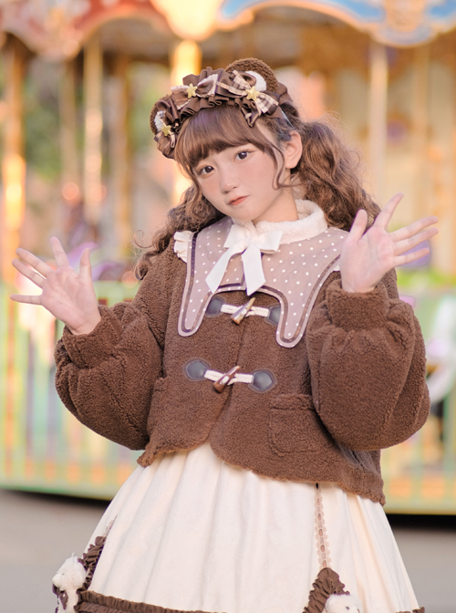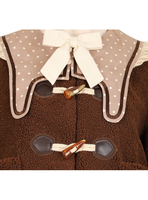 Coffee Bears Series Brown Cute Sweet Lolita Autumn Winter Sheep Horn Buttons Woolen Short Coat