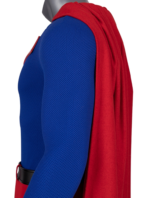 Crisis On Infinite Earths Halloween Cosplay Superman Blue Battle Suit Costume Red Cloak