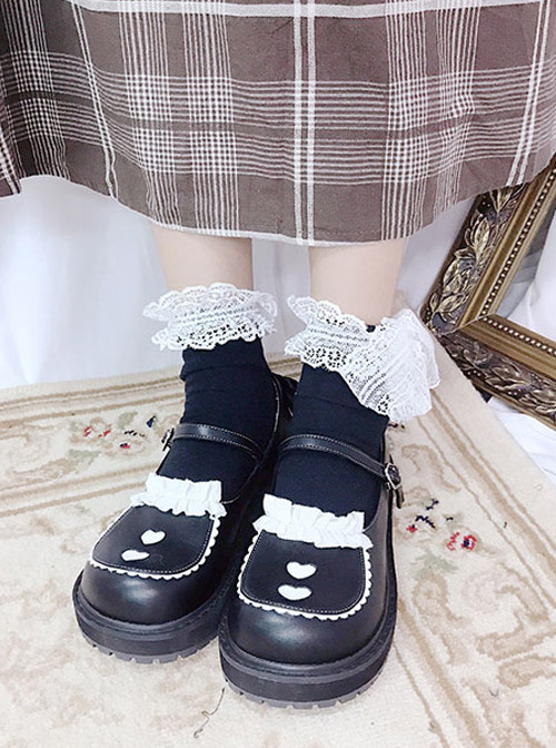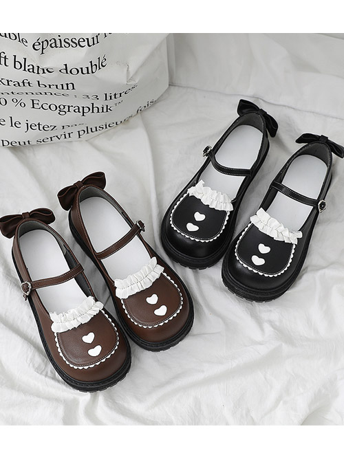 Cute Bowknot Ruffle Round-toe Black Sweet Lolita Shoes