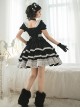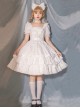 Cute Bowknot Sweet Lolita Square Neck Cotton Ruffle Lace Bubble Sleeve Dress