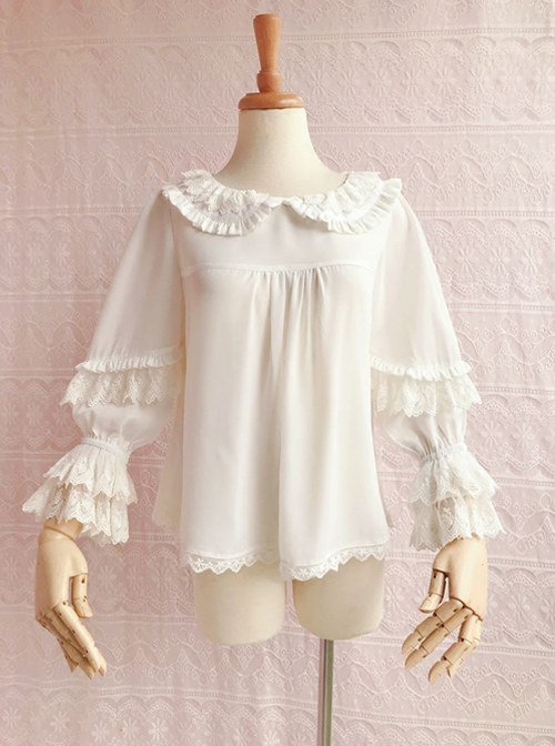 Cute Chiffon Ruffle Doll Collar Lolita Nine Quarter Sleeve Shirt