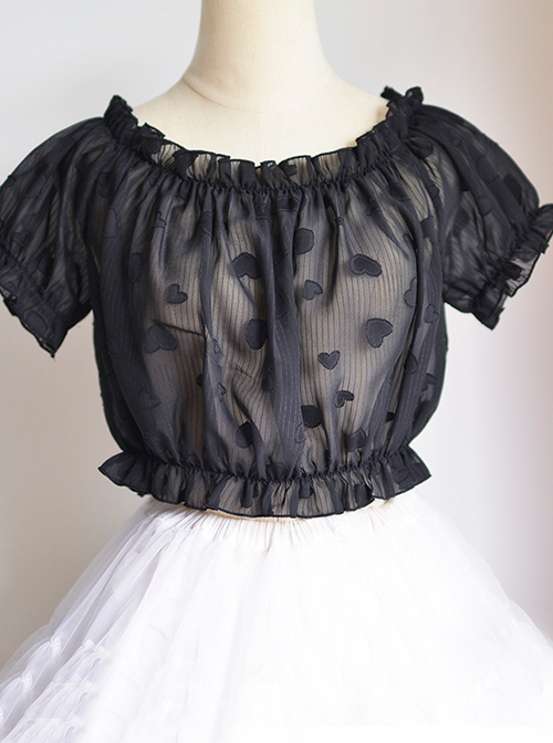 Cute Heart Shape Print Decoration Chiffon Crew Neck Classic Lolita Short Blouse