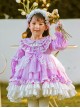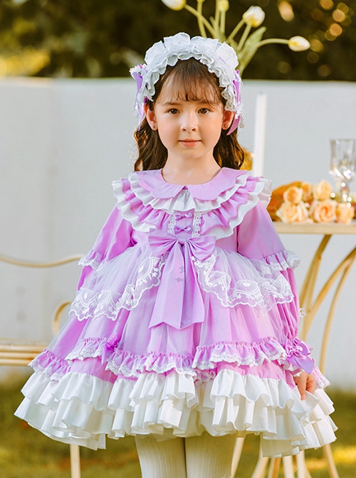 Cute Lapel Lace Stitching Lantern Sleeve Lace Ruffle Hem Spring Autumn Classic Lolita Kids Long-Sleeved Dress