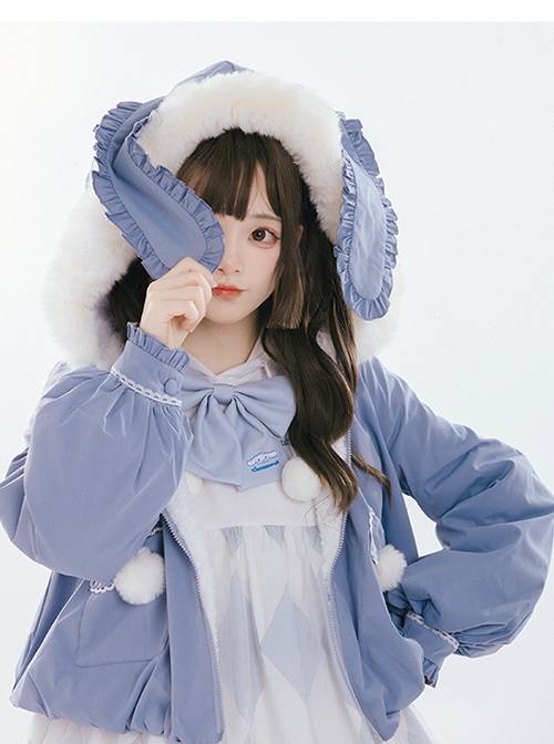 Cute Rabbit Ears Autumn Winter Plush Plush Ball Lantern Sleeves Sweet Lolita Short Coat