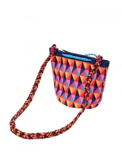 Colorful diamond pattern bag, fashionable chrome heart decoration, detachable woven shoulder strap, daily versatile.