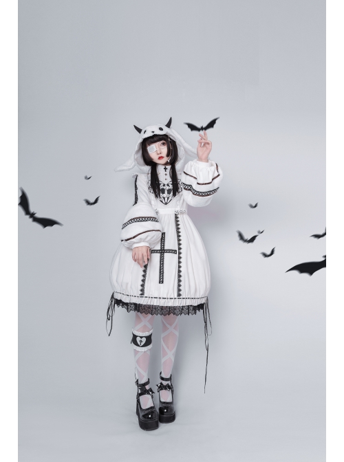 Devil Rabbit Series OP Autumn Winter Halloween Gothic Lolita Long Sleeve Dress With Detachable Plush Rabbit Ears Hat