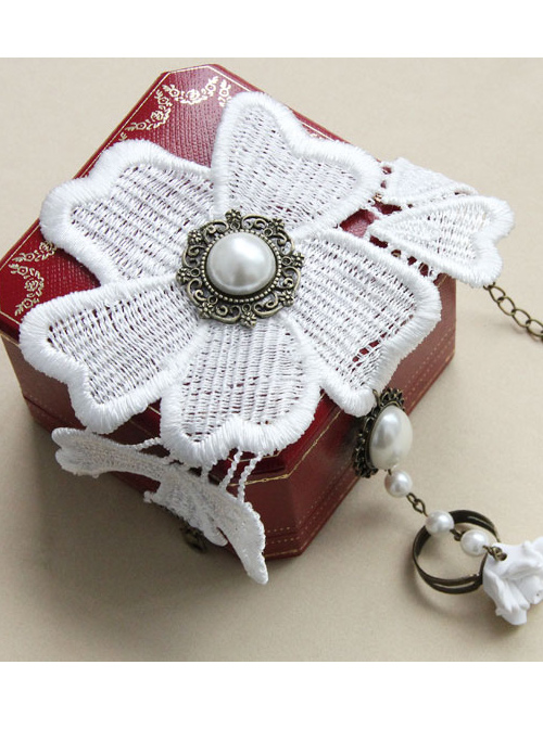 Material: White Lace, Bronze Alloy Accessories, Artificial Pearls
