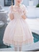 Elegant And Delicate Lace Floral Jacquard Pleated Ruffled Square Neckline Bow Knot Trim Classic Lolita Short Sleeve Dress