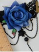 Material: Black lace, bronze alloy accessories, yarn flower, artificial pearls, velvet roses